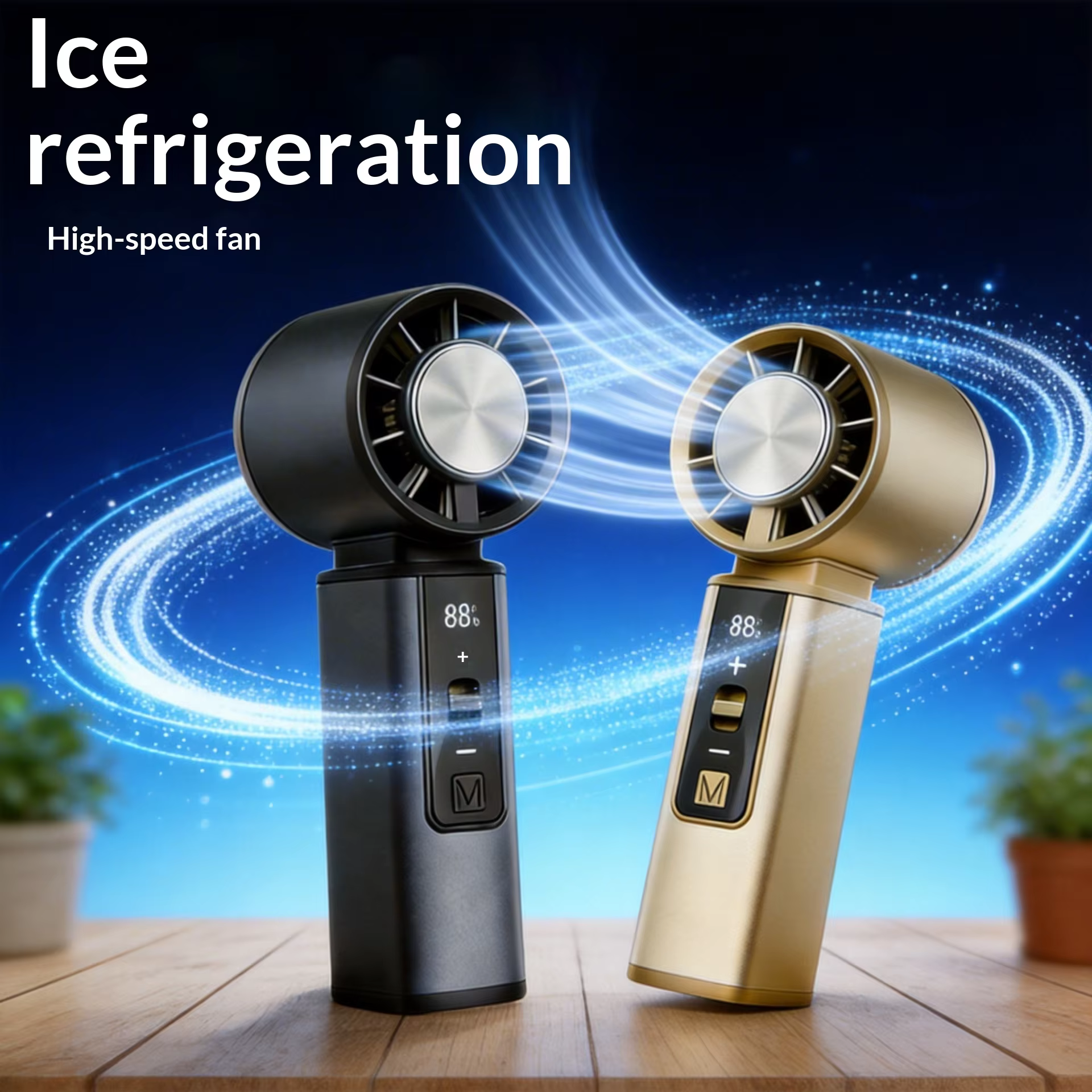 High-Velocity ABS Plastic Outdoor Leisure Desktop Cooling Handheld Fan Brushless Motor 5-Speed USB Turbo High-Speed Ice-Pack Fan