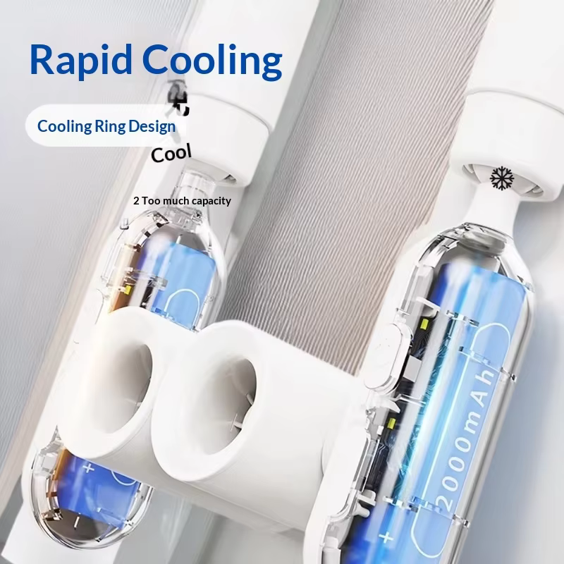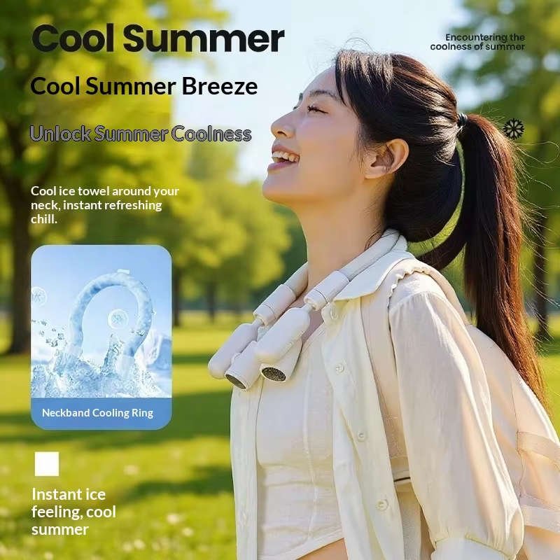 Ice Compress Cooling: Provides instant relief with cold air for comfort. Neck-Mounted Design: Conveniently worn around the neck for hands-free cooling. High-Speed Cooling: Delivers strong airflow to keep you cool. Long Battery Life: Up to 6 hours of use f