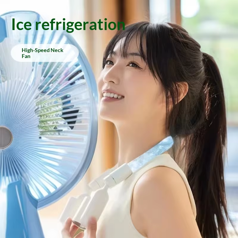 2026 Cross-Border New Ice Neck High-Speed Neck-Mounted Fan Ice Compress Cooling Rechargeable Brushless Motor 3-Speed 3-6 Hours